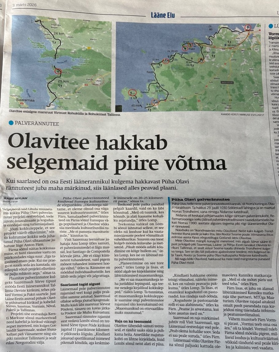 - Ajalehe Lääne Elu paberlehe artikkel “Olavitee hakkab selgemaid piire võtma”.