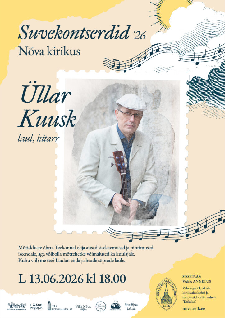 Suvekontsert ’26. Üllar Kuusk Nõva kirikus 13. juunil 2026 kell 18.00. 13. juuni 2026 by Ülle Metsma Leave a Comment Vaata ka kultuurikava.ee