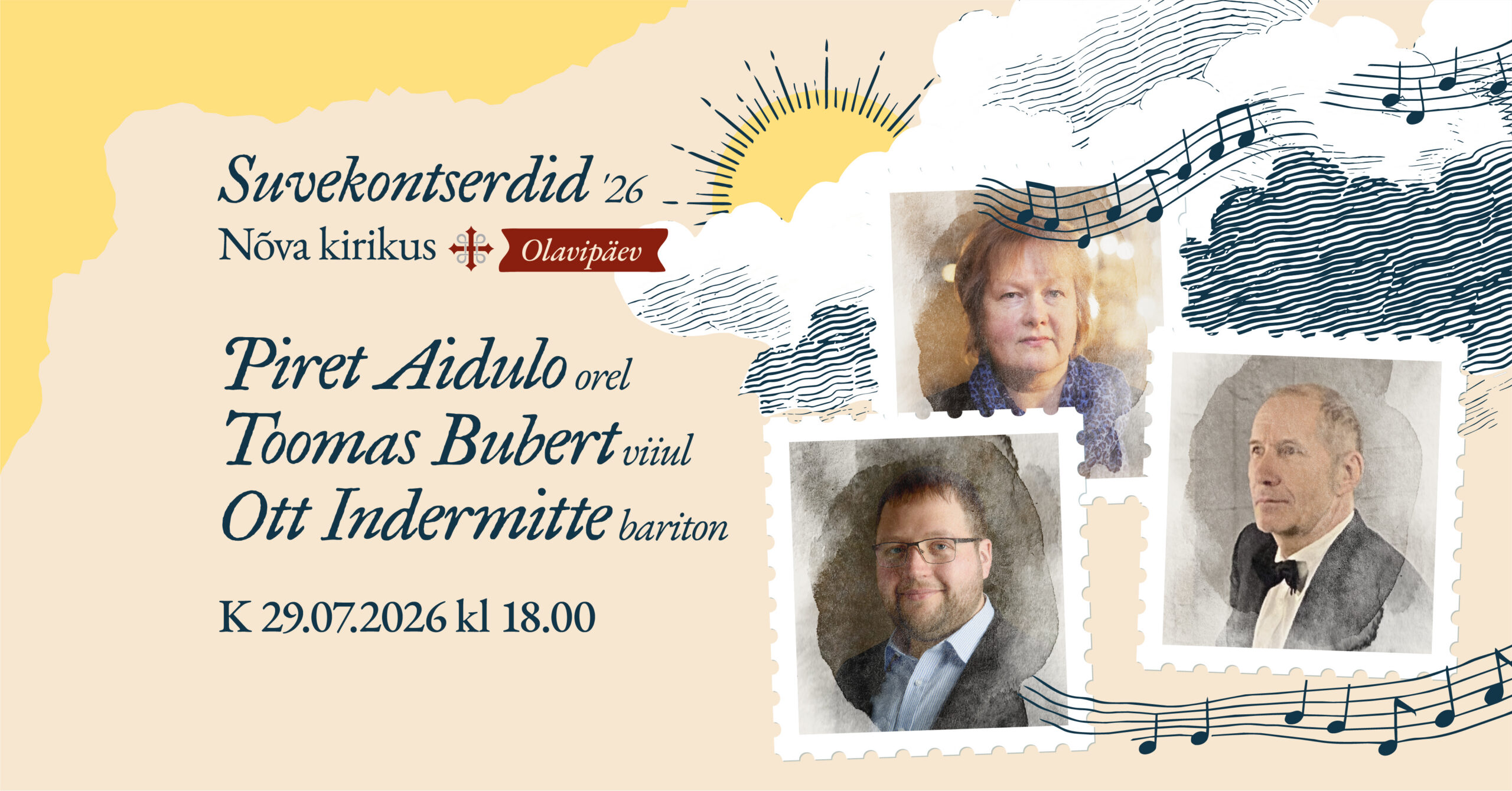 Suvekontsert ’26. Piret Aidulo, Toomas Bubert ja Ott Indermitte Nõva kirikus 29. juulil 2026 kell 18.00. Olavipäev. 29. juuli 2026 by Ülle Metsma Leave a Comment Vaata Püha Olev ja Olavitee Vaata ka kultuurikava.ee