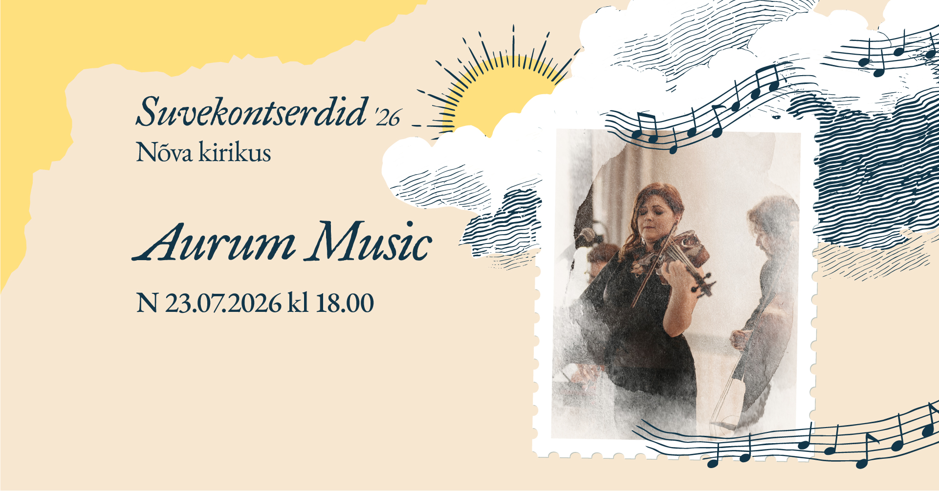 Suvekontsert ’26. Aurum Music Nõva kirikus 23. juulil 2026 kell 18.00. 23. juuli 2026 by Ülle Metsma Leave a Comment Vaata ka kultuurikava.ee