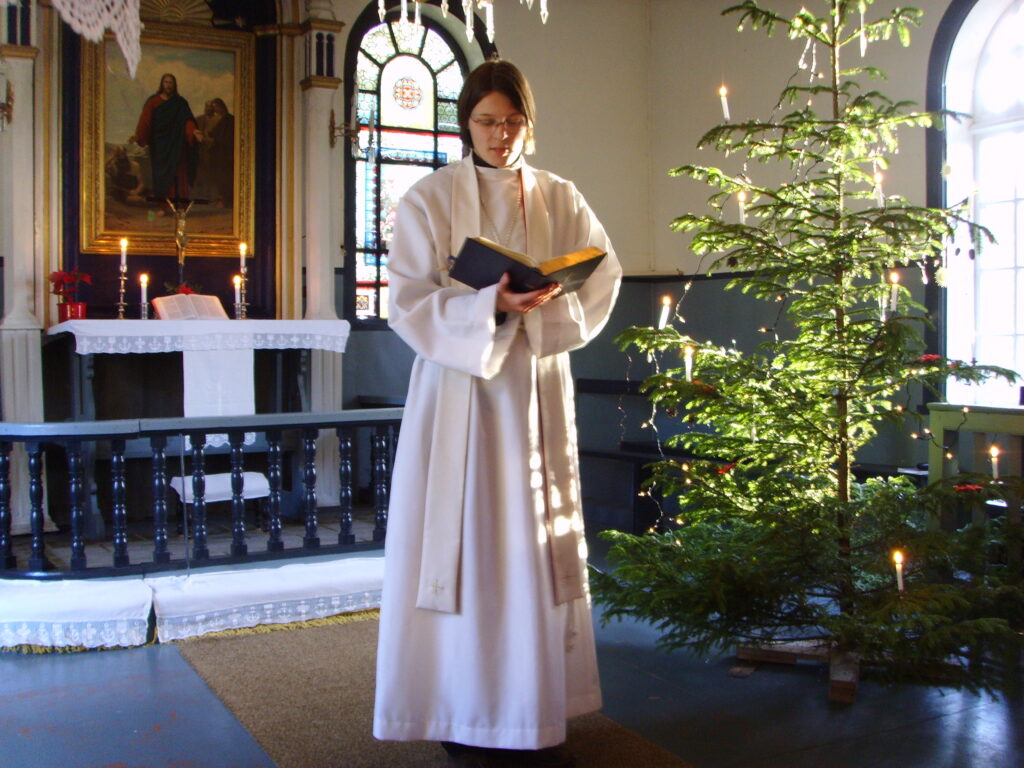Õpetaja Kaisa Kirikal Nõva kirikus teenimas 23. detsembril 2006. Foto: Nõva kogudus.