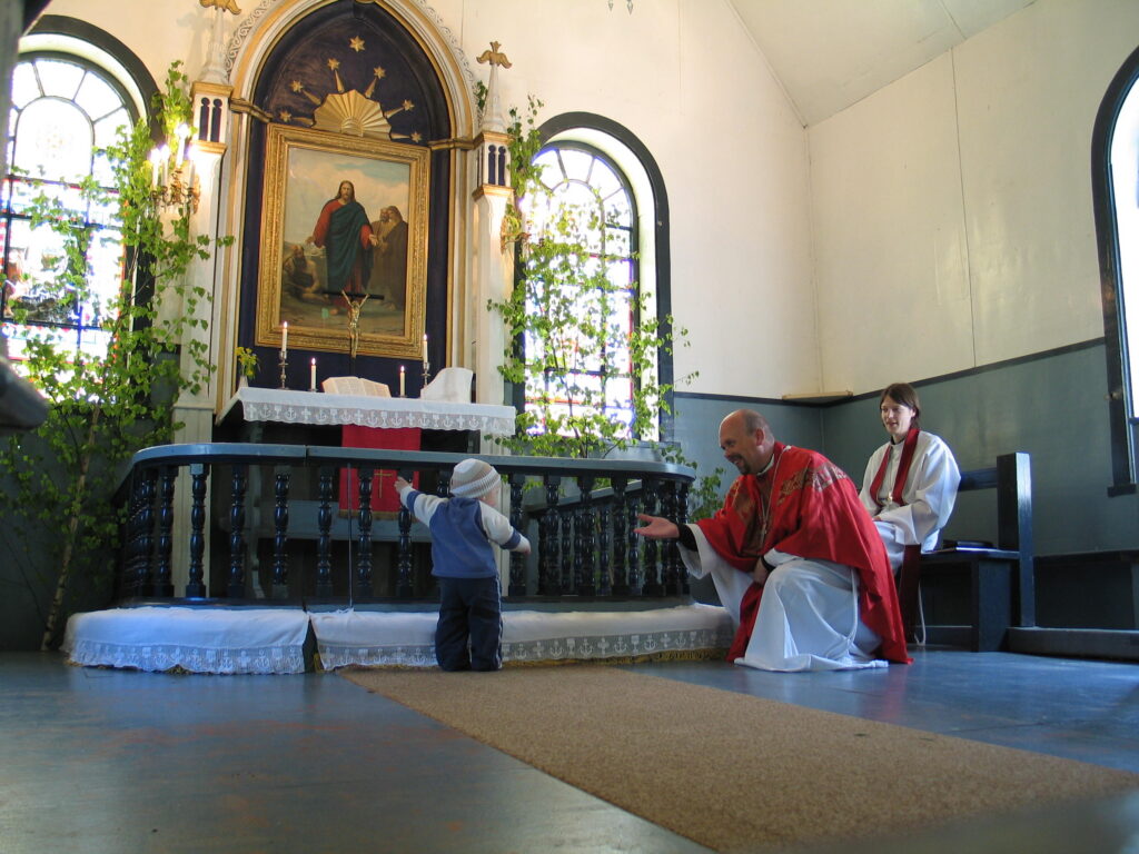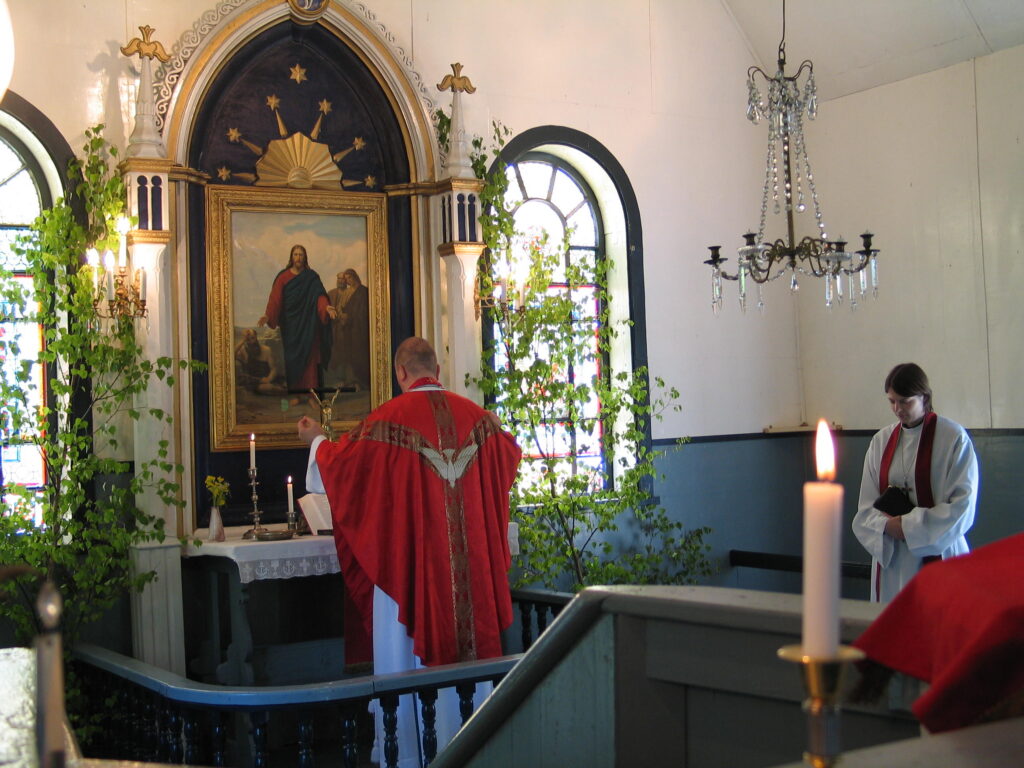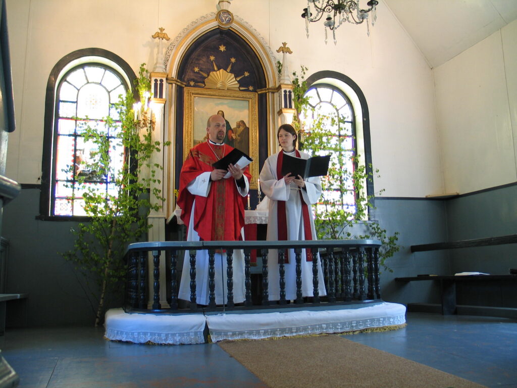 Diakon Indrek Kõiv teenimas Nõva kirikus 10. aprillil 2005. Fotod: Nõva kogudus.