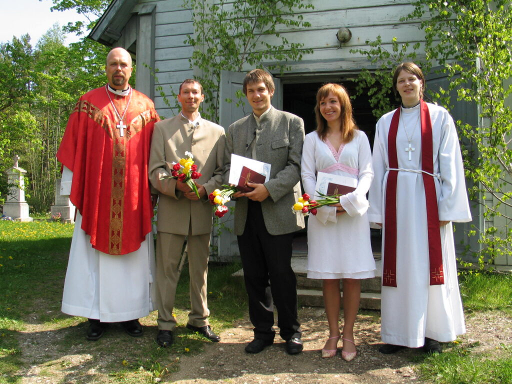 Nõva koguduse õpetaja Kaisa Kirikal ja Tallinna Kaarli koguduse õpetaja Jaak Aus teenimas 27. mail 2007. Sellel maikuu päeval ristiti 3 noort inimest. Fotod: Nõva kogudus.